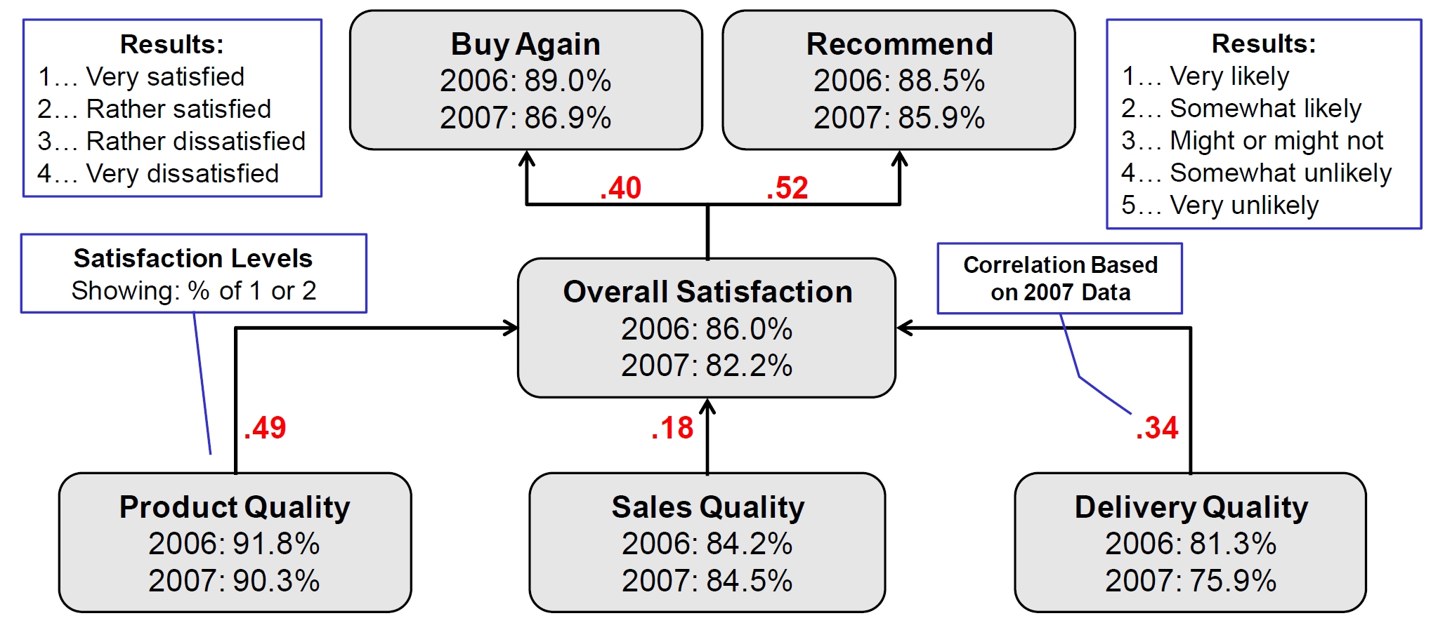 4. The major driver for satisfaction seems to be Product Quality with Delivery Quality following.